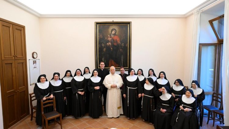 Leão XIV, depois de celebrar a Missa na capela da Estação dos Carabinieri de Castel Gandolfo, visitou as religiosas do Mosteiro de Albano, rezando com elas: o testemunho de vocês é um “ testemunho precioso”